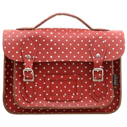 10.5" Small Leather Satchel Bag In Red With Polka Dots By Yoshi . Satchels Product Description