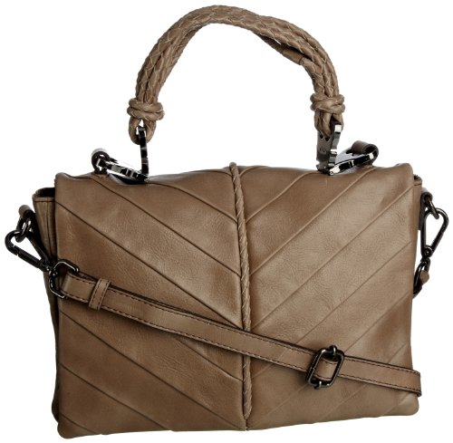 I have this in the taupe colour and it is perfect. Inside there are two compartments separated by a divide. It comes with a shoulder strap which you can detach. The grad handle is made up of lots of twists of leather. It's a really nice bag and will hold a paperback without any problems or a large purse.