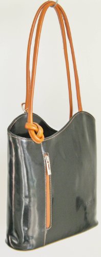 Black & Tan Italian Leather Shoulder Bag and Rucksack in Two Colours LG by Handbag Bliss! (Black & Tan) Product Description