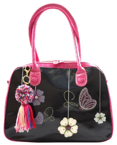 Description: We've added a new twist to one of our best-selling designs. This season, butterflies have had a makeover and are looking lovely. Applique butterflies and flowers adorn bags, purses and wallets along with cute pom poms and tassles - a big nod to the season's love of textured accessories. On trend but distinctive, this design is available in lime green, hot pink or classic black.Dimensions: 33.4cm (h) x 41.5cm (w).Materials: Soft faux leather, gold tone metal, wool.Design Features: Look inside and you'll find a funky cityscape patterned interior lining along with plenty of storage space. This bag has a zip top opening, zip back pocket, mobile phone pocket, iPod pocket and an inner zip pocket. Exterior features include a cute pom pom and tassel embellishment dangling from detachable gold tone metal rings. Last but not least, the carry handles come in a mock croc effect - a finishing touch that's totally on trend.For when you absolutely must fit everything into one bag, accept no substitute! Spacious and stylish, the Weekender is a winner on all fronts. You'll wonder how you managed without it.