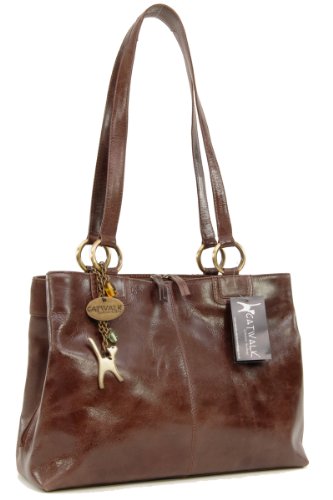 Description: The Bellstone Shoulder Tote allows you to carry all of the necessities for work, shopping or travelling and can comfortably carry documents and diaries up to A5 size. Should you need to carry the occasional A4 Folder, this will fit vertically into the front compartment but will be proud of the bag by 2 to 3 inches and you will not be able to close that particular compartment with its magnetic snap. Vintage Leather is gorgeous crisp, crunch-leather with a subtle satin sheen. If you covet the look of old, comfortably worn-in leather you won't have to wait the years it takes for the look to develop naturally as the leather has been specially distressed so that it takes on that much coveted fashionable vintage effect much more quickly. The surface will scratch easily and creases will appear in the leather but these marks will all blend in over time adding to the unique character of the bag. This effect will be less prominent with darker colours. Leather is one of those fantastic materials that can look better with a little age. Sure, brand new leather products do look nice but sometimes the old beat-up look or worn leather effect is just plain cooler. To care for this type of leather we recommend the use of leather cream conditioner. Please remember that as leather is a natural product, the intensity of the colour will vary slightly from hide to hide during the dyeing process, making each handbag totally unique. Long, elegant double handles allow the bag to be worn comfortably on the shoulder. This is a mid to big bag with excellent capacity plus plenty of compartments and pockets for the organisation of contents. The central compartment closes with twin zips which meet in the middle and the bag opens wide so all contents can be viewed at a glance. The base of the bag is flat. Each bag comes with the iconic Cat Logo Bag Charm.