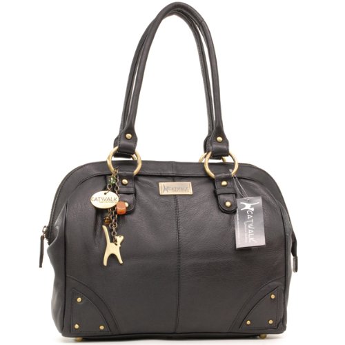 Description: Designed to be worn on the shoulder and lovingly hugged into the body, the Doctor shoulder bag is a great looking design which simply exudes street-cred. This is a wonderfully big bag with excellent capacity.Fossil Leather is milled to give a natural texture and a soft sheen to the surface. This type of leather has strength and durability whilst retaining a supple, slouchy accent. To care for this type of leather we recommend the use of leather cream conditioner.We would describe the colour as jet black but please remember that as leather is a natural product, the intensity of the shade will vary slightly from hide to hide during the dyeing process, making each handbag totally unique. Long handles are elegantly rolled for comfort. The bag fastens securely with an antique brass metal zip and opens wide for easy access. Interior pockets are reinforced with leather for a touch of luxury. There is ample room for journals, magazines and paperwork up to A4 size; interior cavity 25.5 x 31 x 8 cm. The flat base has studded feet. Each bag comes with the iconic Cat Logo Bag Charm. Dust Cover included.