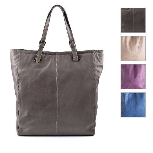 FEYNSINN large shopper shoulder bag MELLY for women - crafted handbag in genuine grey leather (14 x 16 x 4 in.) Product Description