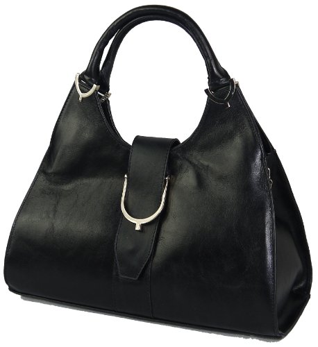Genuine Italian Leather, Black Gucci Inspired Stirrup Design Handbag or Shoulder Bag Product Description