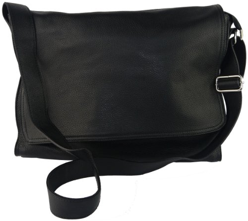 Genuine Italian Leather, Black Non Structured Messenger Manbag Product Description