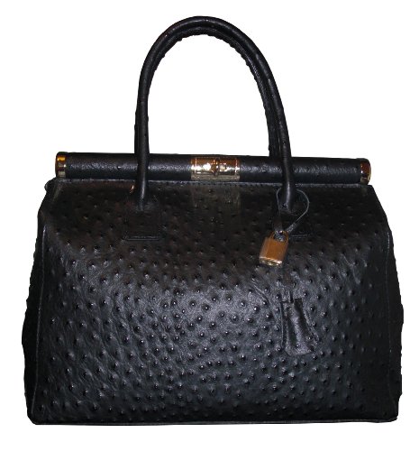 Genuine Italian Leather, Large Black Turnlock Gladstone Handbag, Shoulder Bag or Briefcase. Product Description