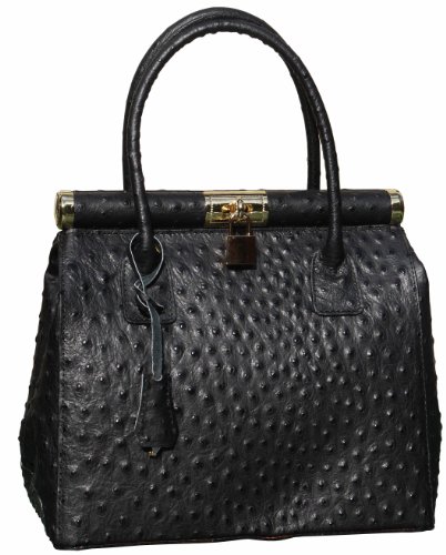 Genuine Italian Leather, Medium Black Turnlock Gladstone Handbag, Shoulder Bag Product Description