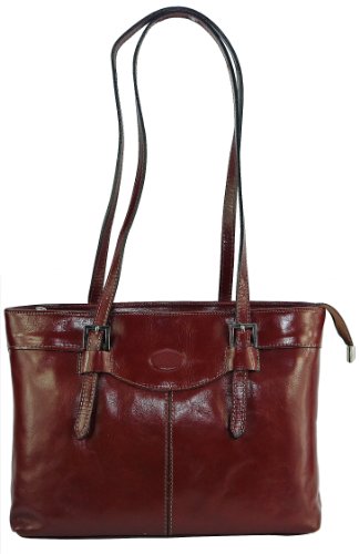 Genuine Italian Leather, Rich Brown Long Handled Double Buckle Shoulder Bag Handbag Product Description