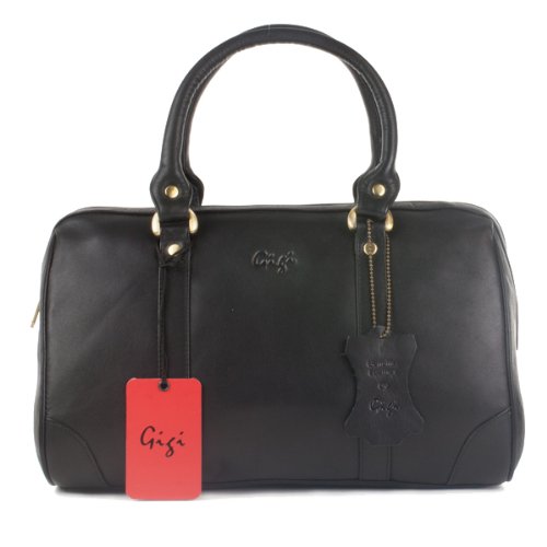 Description: From the Othello Collection by Gigi, this handbag is made from high quality traditional leather. This is strong, durable leather with a fine satin sheen which positively enhances the smartly tailored cut of the handbag. Hardware has been given the designer touch which gives it that vintage, aged brass antique effect. BLACK LEATHER: beautifully smooth to the touch with a soft, supple feel. The interior is fabulously lined with matching black Gigi signature fabric. Double handles are elegantly rolled for a comfortable grip in the hand. A detachable, adjustable strap allows wear hands-free cross-body or over-the-shoulder. The broad, flat base of the handbag means it has excellent capacity for a wide range of belongings; can hold reading books and diaries up to A5 size. The handbag fastens secrely with a zip. Dust cover included.