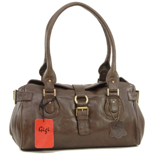 Description: From the Othello Collection by Gigi, this top handle bag is made from quality vintage leather in a delicious shade of matte brown which is beautifully smooth to the touch with a soft, supple feel and fashionably slouchy accent. Vintage leather is skilfully designed to mark and scratch easily but these marks will blend over time, adding to the character of the bag. The interior is fabulously lined with dark brown Gigi signature fabric. Designed to be hand-held, the handles are beautifully rolled but the bag can also be worn on the shoulder and hugged into the body. The bag fastens securely with a double flap-over and magnetic snap beneath the buckle. There are plenty of compartments and pockets to organise contents and the bag opens wide for easy access. The base of the bag is flat.