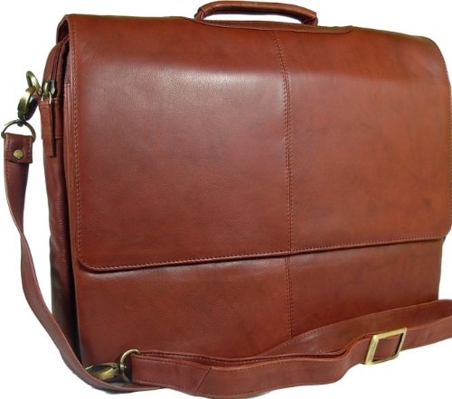 New Visconti unisex chestnut brown soft leather flap over briefcase messenger bag style 658 Product Description