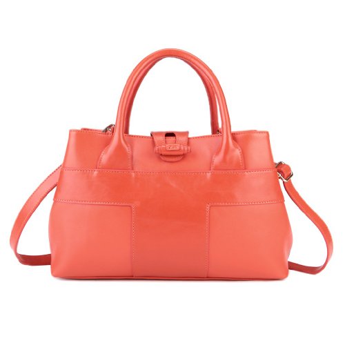 Description: Leather purse bag with front insert made in shiny skin, closure by small flap interlocking, handles and strap Brand: DuDu® Material: soft Calfskin Dimension: 33 × 21 × 15 cm, Height handles: 13 cm, Shoulder strap length: 110 cm Weight: 800 g Kind: Ladies Composition: 1 external pocket, 1 inner pocket with zip, 1 phone pocket and 1 document holder pocket Inner structure: 1 inner pocket with zip, 1 phone pocket and 1 document holder pocket Available colors: Orange. All plain colour