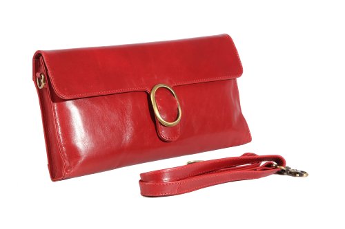 Red leather large clutch handbag classic styling with optional shoulder strap by Pell Mell Product Description