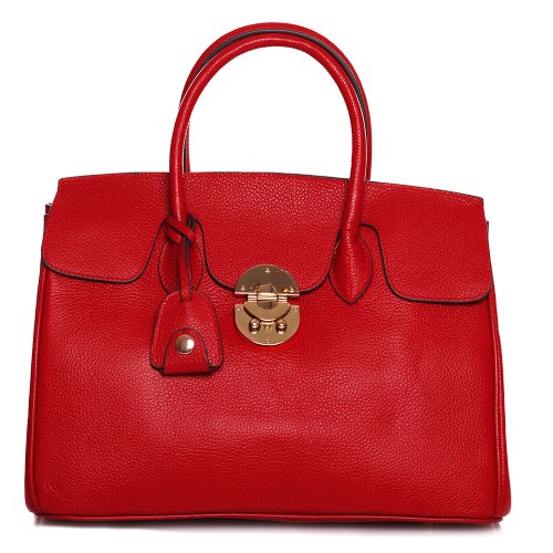 Lipstick red tote bag made ??of grained, high-quality calfskin,