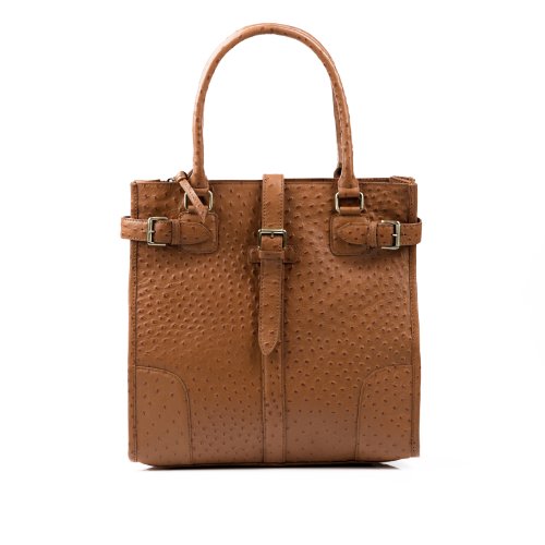 shopper shoulder bag JULIA by BACCINI - leather with ostrich pattern hobo handbag - tan-cognac (35 x 34 x 10 cm) Product Description