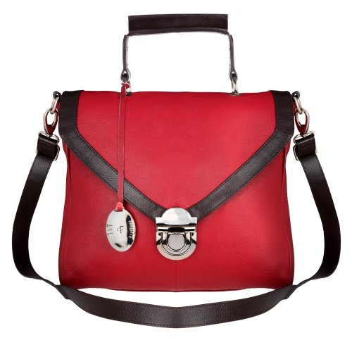 Description: Inspired by fall 2012 collections this sleek satchel bag is the start of the show. The satchel comes in seductive deep red leather with bitter chocolate trims and an alluring silver push lock front. The bag comes complete with an adjustable cross body strap and a top handle for that super chic style.