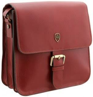 Description: Italian vegetable tanned leather messenger bag 23cm x 23cm x 9cm#Front flap with magnetic closure and buckle detailing. Zipped back pocket#Bag is divided into 4 sections with inside zipped pocket, zipped central pocket,slip pocket, mobile phone pouch, pen and key loops#Adjustable fabric and leather shoulder strap approx 150cm maximum#Beautifully lined with Tumble & Hide branded lining and with quality antique brass fittings. Tumble & Hide dust bag